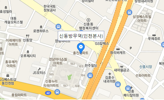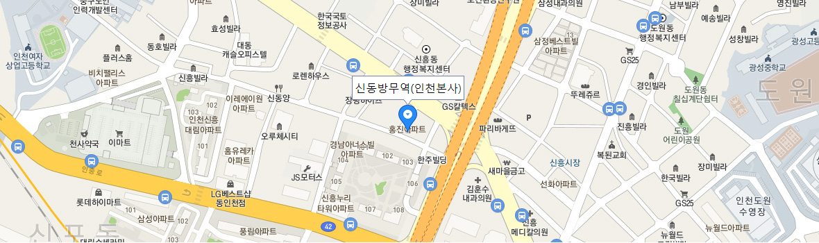 인천본사 지번주소 : 인천광역시 중구 신흥동 2가 43-11번지, 1F